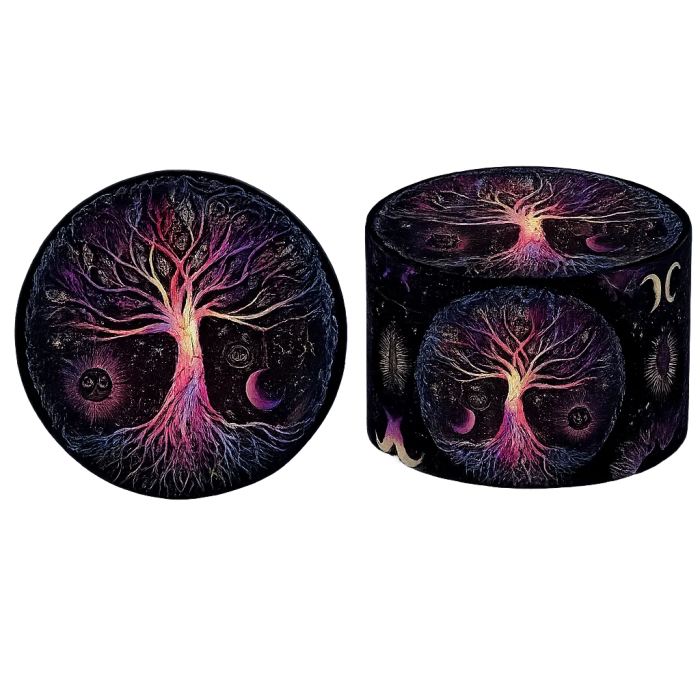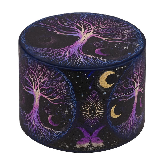 Гріндер "Дерево життя" у фіолетовому кольорі — це практичний аксесуар для подрібнення тютюну з унікальним символічним дизайном. Виконаний із міцного металу, він поєднує функціональність і стиль, роблячи процес використання зручним та ефективним.