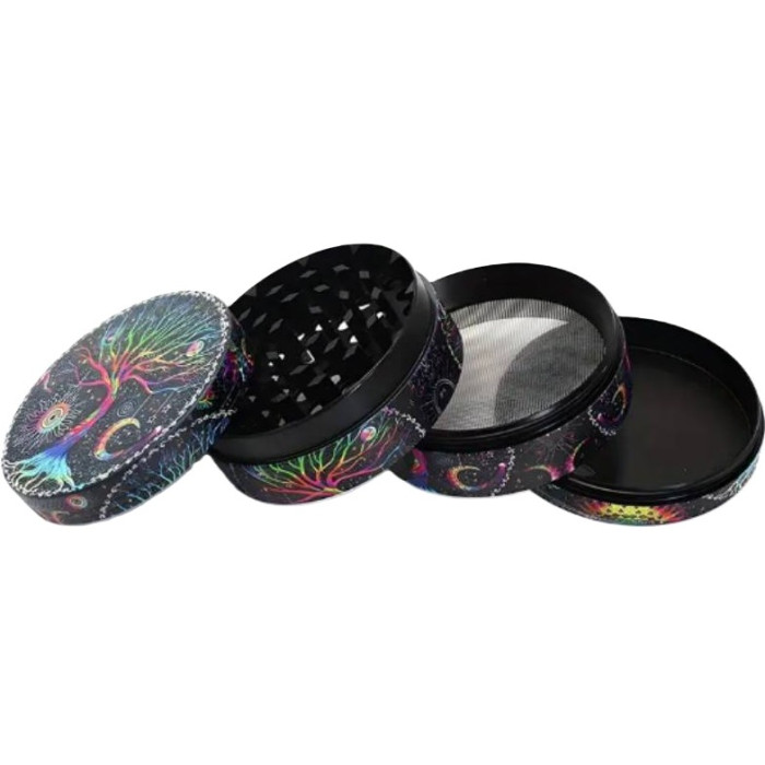 Гріндер "Дерево життя" різнокольоровий — це зручний і надійний аксесуар для якісного подрібнення тютюну. Виконаний із міцного металу, він вирізняється оригінальним різнокольоровим дизайном із символічним зображенням дерева, що уособлює гармонію та енергію природи. Компактна форма та багатосекційна конструкція роблять його незамінним у щоденному використанні.