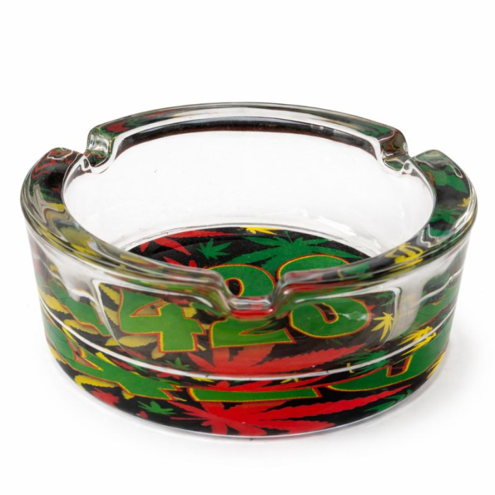 Кругла скляна попільниця з прозорого скла — практичний та стильний аксесуар для щоденного використання. Лаконічна форма поєднується з оригінальним принтом "420" на дні, який додає виробу індивідуальності та виразного характеру.