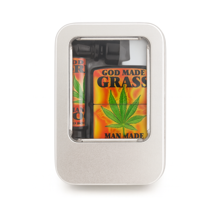 Бензинова запальничка "GOD MAKE GRASS": надійна та стильна, з оригінальним оформленням.
