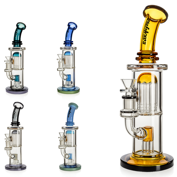 Изготовлен из прочного боросиликатного стекла толщиной 5 мм, что гарантирует долговечность и устойчивость к перепадам температур. Встроенная система Double Arms Perc эффективно фильтрует и охлаждает дым, делая затяжку мягкой и приятной.