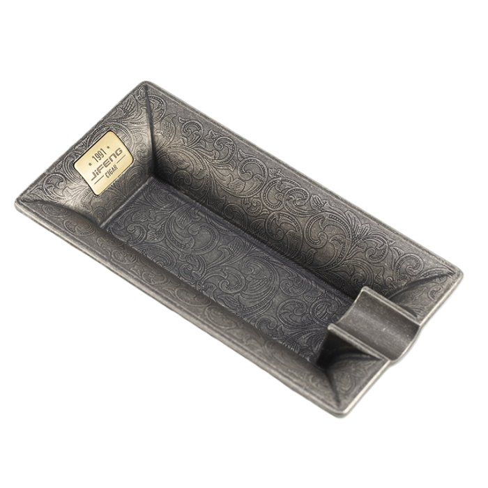 Элегантная прямоугольная пепельница в серебристом цвете создана специально для ценителей сигар. Она сочетает стильный дизайн с классическим узорным гравированием и практичностью в использовании. Компактный размер делает этот аксессуар удобным как для домашнего использования, так и для офиса или террасы.