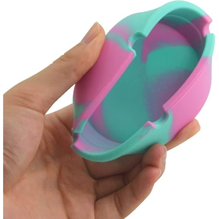 Силиконовая круглая пепельница — практичный и удобный аксессуар для повседневного использования. Благодаря гибкому и прочному материалу она устойчива к повреждениям, не бьётся и легко очищается после использования.