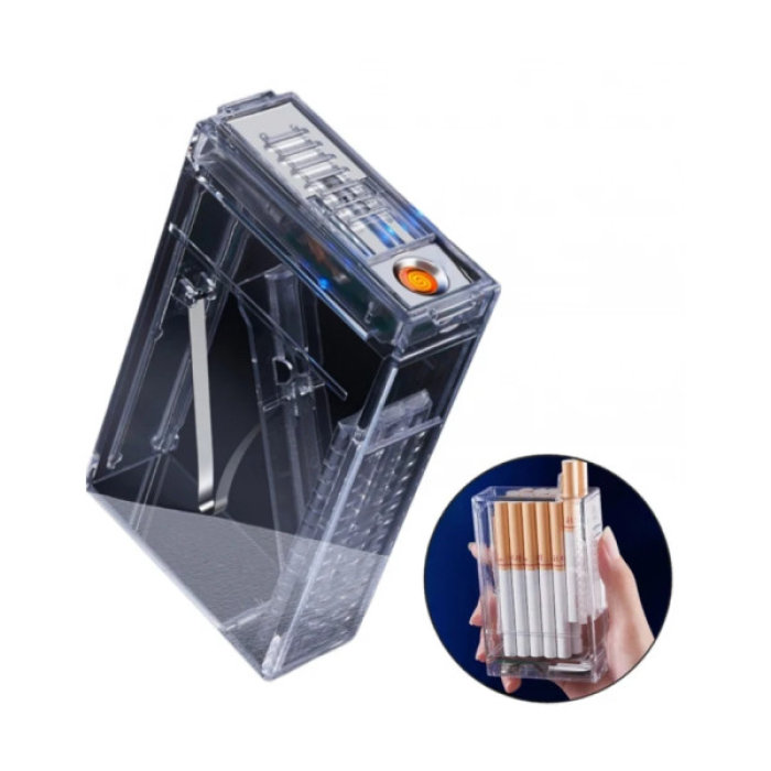 Корпус выполнен из прочного металла или ударопрочного пластика, что обеспечивает долговечность и надёжную защиту сигарет от влаги, пыли и деформации. Встроенная USB-зажигалка активируется одним нажатием кнопки и поджигает сигарету даже при сильном ветре.