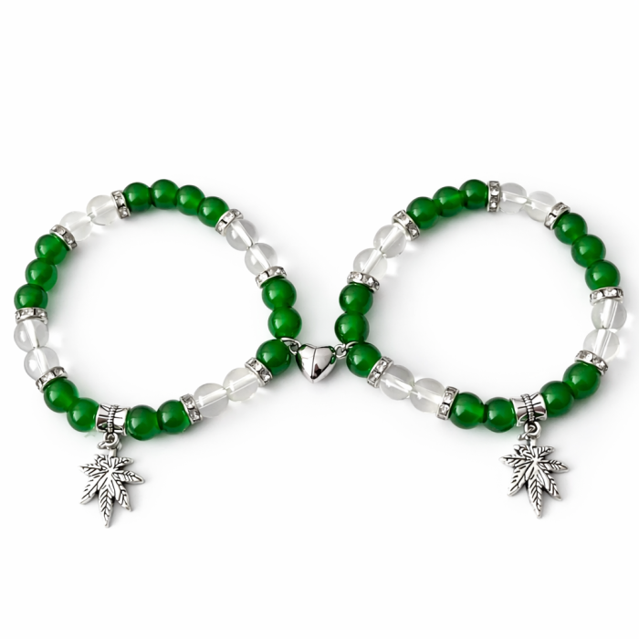Оригінальні парні браслети «Weed Union» — стильний аксесуар з символічним дизайном, що уособлює єдність, зв’язок і спільні цінності. Браслети виконані з шнурів та намистин і оснащені магнітними елементами, які з’єднуються між собою, символізуючи близькість і взаємне притягання.