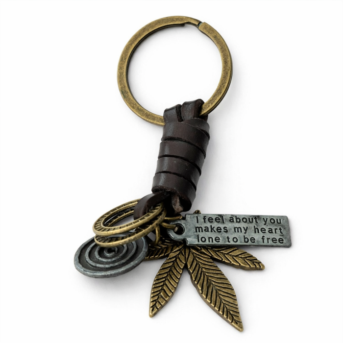 Оригінальний брелок канабіс, виконаний у стилі стімпанк. Аксесуар виготовлений із приємного на дотик матеріалу, надійне кріплення дозволяє легко зафіксувати його на ключах, сумці, рюкзаку або інших речах.